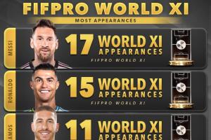 自2007年首次入选开始,梅西曾经创纪录的连续17次入选FIFPRO年度最佳阵。去年梅西落选最佳阵,纪录终结。今年梅西再次进入最佳阵容候选名单。
