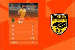 梅开二度+绝平,官方:广东广州豹外援罗萨当选中甲第28轮最佳