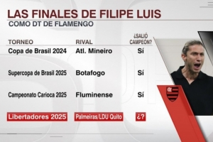据ESPN统计,费利佩-路易斯执教弗拉门戈以来带队参加3场决赛,包括2024年巴西杯决赛、2025年巴西超级杯决赛、2025年里约热内卢联赛决赛,全部取胜,决赛胜率100%。