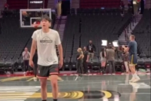 开拓者官推晒杨瀚森和约老师同场热身视频:训练直到偶像成为对手