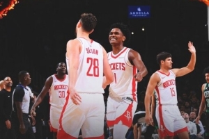 三连胜!火箭发布赢球海报:申京+阿门庆祝登上封面 谢泼德入镜