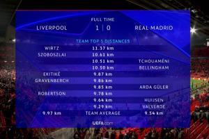 红军vs皇马跑动榜:维尔茨超11km第1!索博 贝林 琼阿梅尼破10km