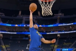金州拉文名不虚传!库里热身自抛自扣单手扣篮 这一扣打几分
