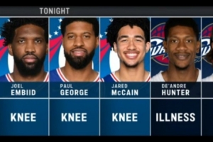 均伤兵满营!76人vs骑士共6人缺席:恩比德/乔治/亨特/斯特鲁斯等