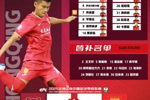 体育资讯11月08日讯 北京时间14:30,2025赛季中甲第30轮,上海嘉定汇龙vs重庆铜梁龙,赛前官方公布首发阵容。本场比赛重庆铜梁龙取胜就将升入中超。