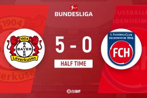惨案预定!?勒沃库森半场5-0领先海登海姆!