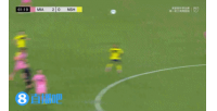 第62分钟布斯克茨停球,纳什维尔球员布鲁格曼倒地捂着脸。