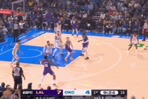 真不擅长!小萨击地传球且挡开防守人 威少三分直接三不沾...