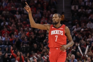 感觉来了!杜兰特反击接小贾传球 再中一记追身三分