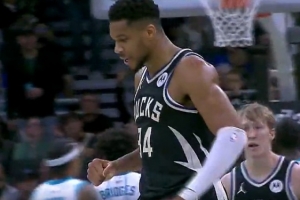 野兽出击!波蒂斯三分不中&字母哥前场板一抢三 补篮打进还加罚