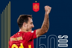 奥亚萨瓦尔迎西班牙国家队50场里程碑,前49场19球10助攻+1冠军