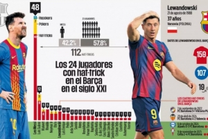 体育资讯11月16日讯 在巴萨客场4比2击败塞尔塔的比赛中,莱万上演了帽子戏法,这也是他在巴塞罗那时期的第四次。凭借这三个进球,这位波兰前锋跻身巴萨21世纪帽子戏法次数最多的球员的精英榜单之中。