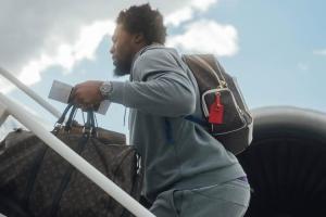 尼克斯官方发布球员登机照 “小熊”亚布塞莱翘臀格外抢眼