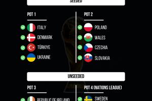 世欧预附加赛分档出炉:意大利丹麦1档,波兰2档瑞典4档