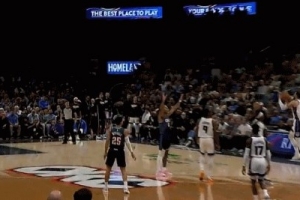 就差一点点!拉文后场超远折叠压哨三分打板命中 可惜先超时