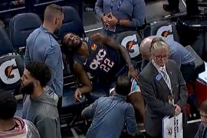 可别有大碍!卡森·华莱士挤掩护时被雷诺撞到大腿 受伤下场