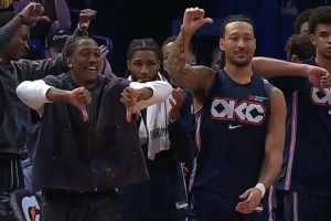 这氛围!卡鲁索快攻不扣篮 雷霆替补席集体弱爆了招呼