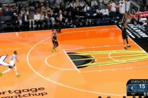那就扣一个吧!吉莱斯皮抢到长篮板推反击 布克轻松飞扣!