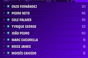 恩佐是今年唯一进球、助攻皆上双切尔西球员,参与21球队内最多