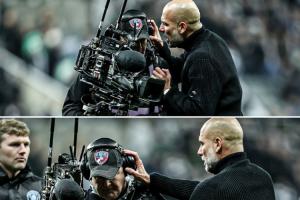 发生了什么?曼城输球后瓜帅与摄影师交流,扒开耳机上前耳语