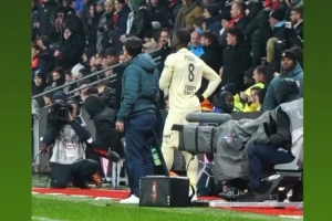 踢倒费尔明被罚下!桑塞特在VAR审查时向裁判称自己是正常铲球