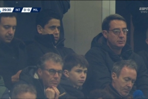 巴黎主席纳赛尔现身看台,现场观战米兰德比