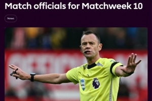 英超第10轮裁判:吉莱特执法热刺vs切尔西 阿特维尔执法红军维拉
